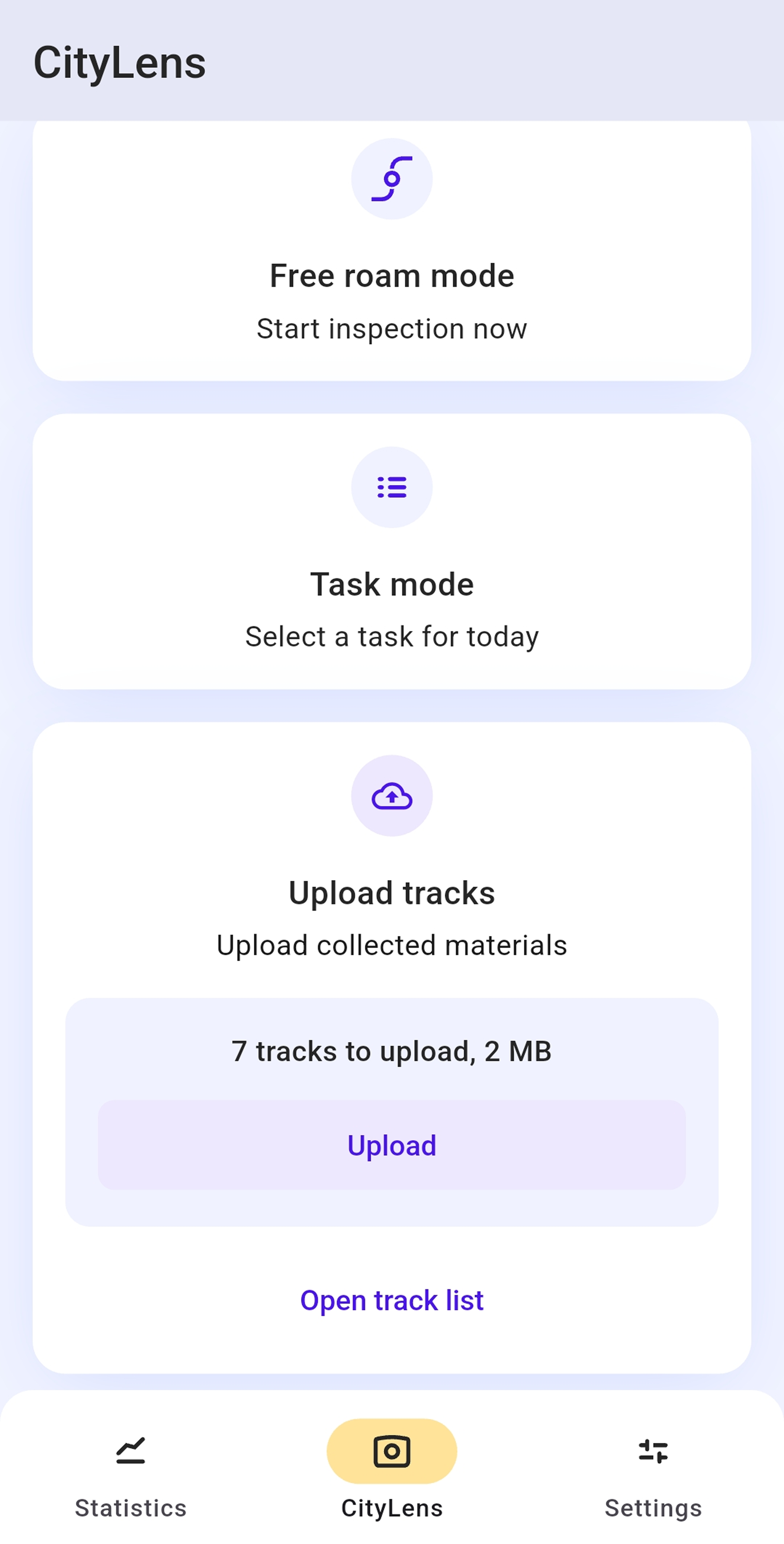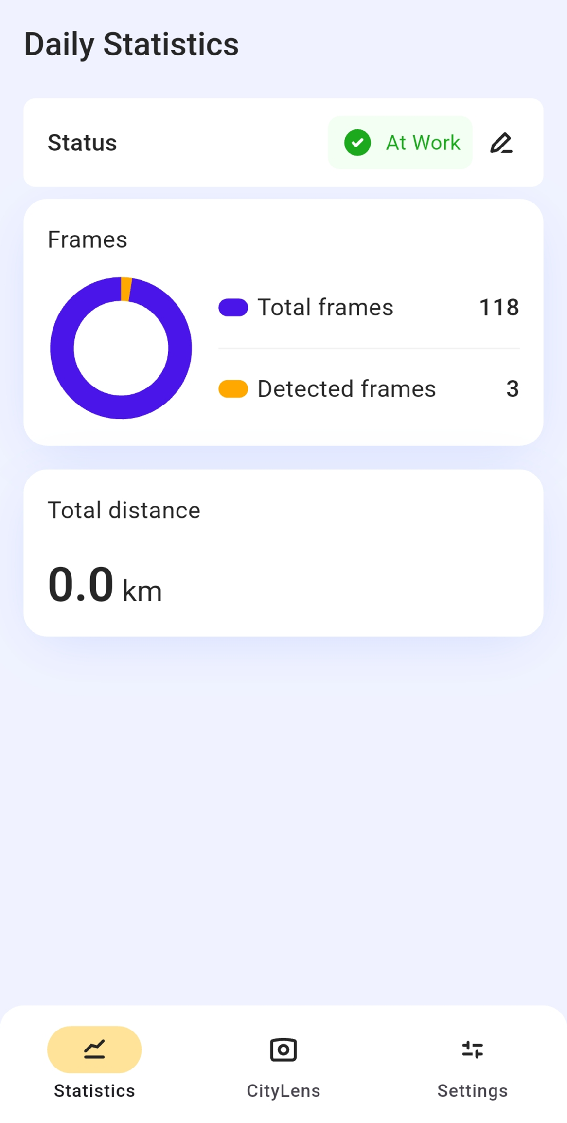 Once the data is uploaded, go to the Statistics tab to view the updates on the total traveled distance and the number of captured and uploaded frames. The data is relevant for the current day only.