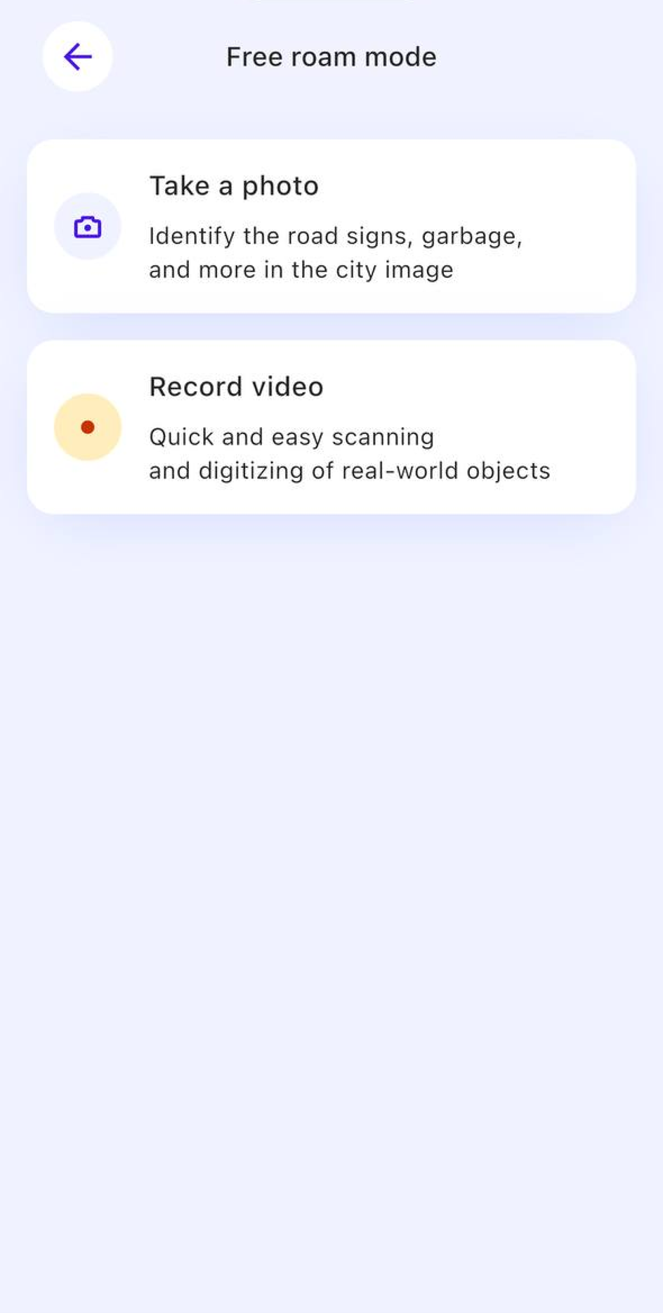 Free roam mode: driving an area without a specified route. In this mode, you can take photos or record videos. Internet connection is not required for data recording.