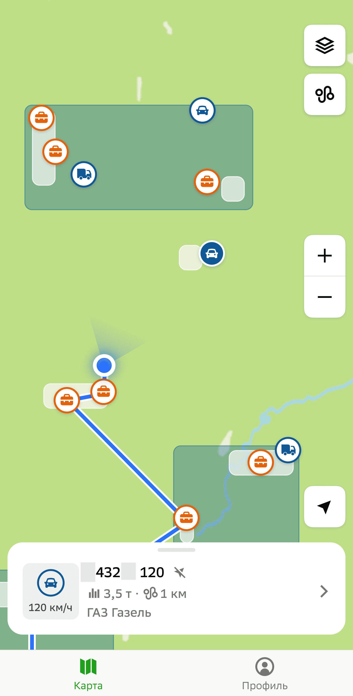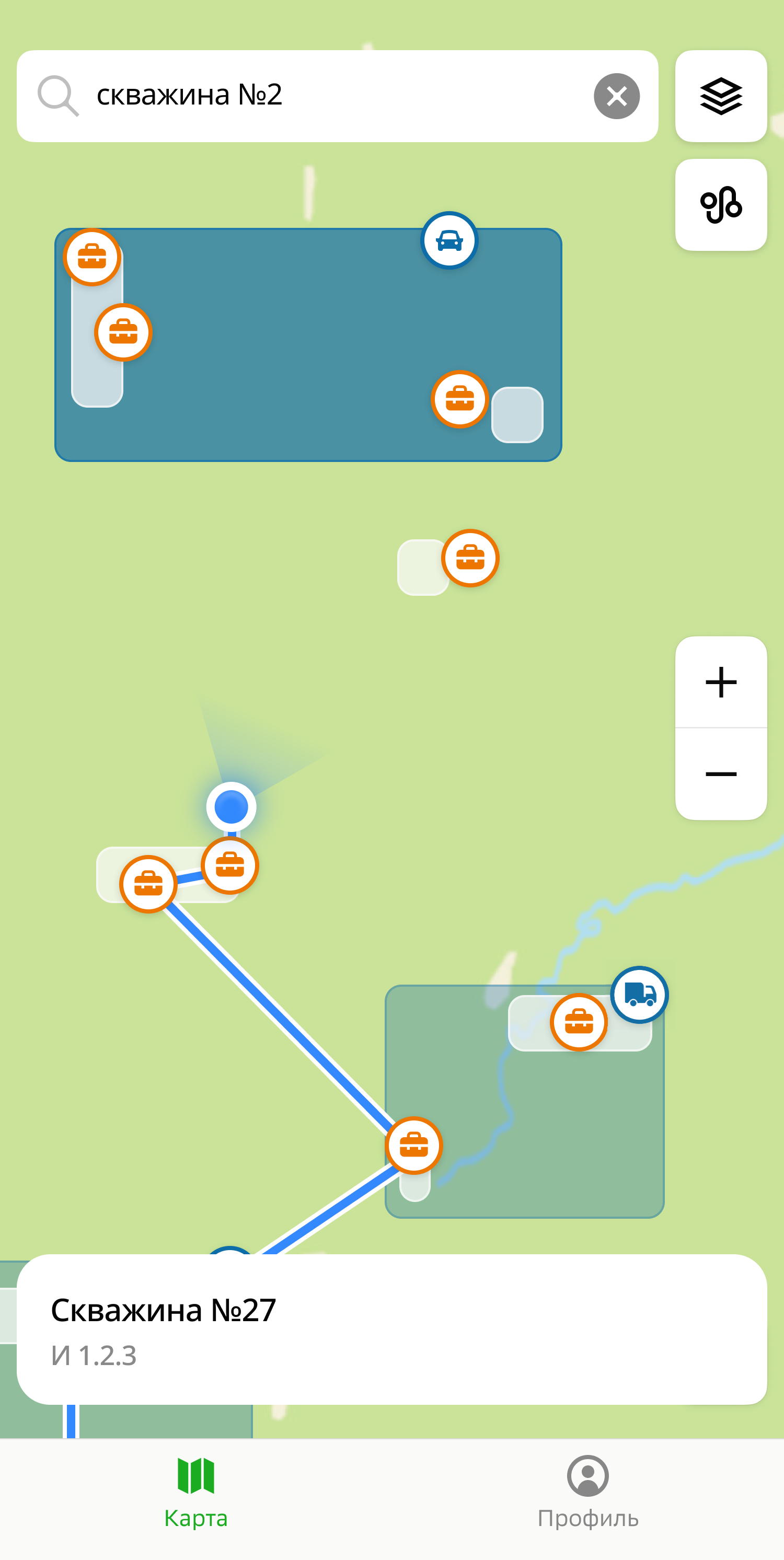 - Map areas with organization infrastructure: auxiliary geozones (with residential, administrative, utility, and other facilities) and production geozones (areas for performing work).