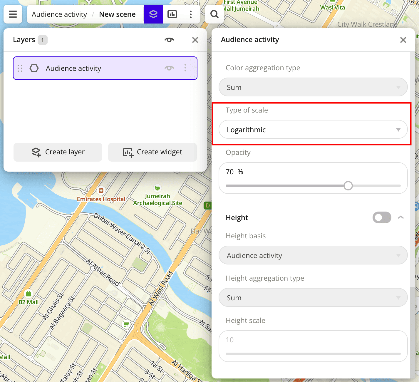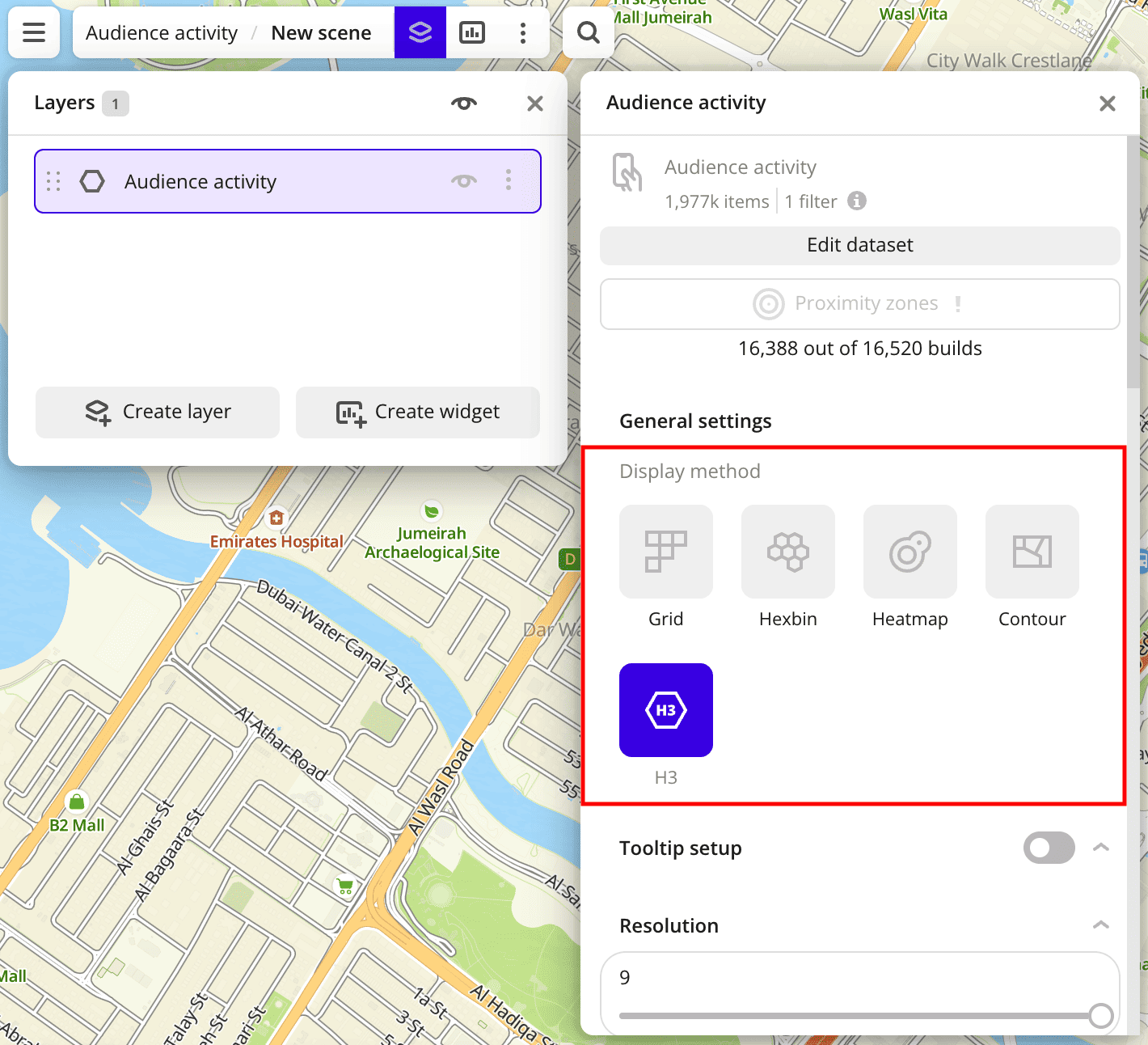 - Comparing areas by activity. It allows businesses (cafes, shops, and services) to identify areas with a high audience concentration and constant user flow.
