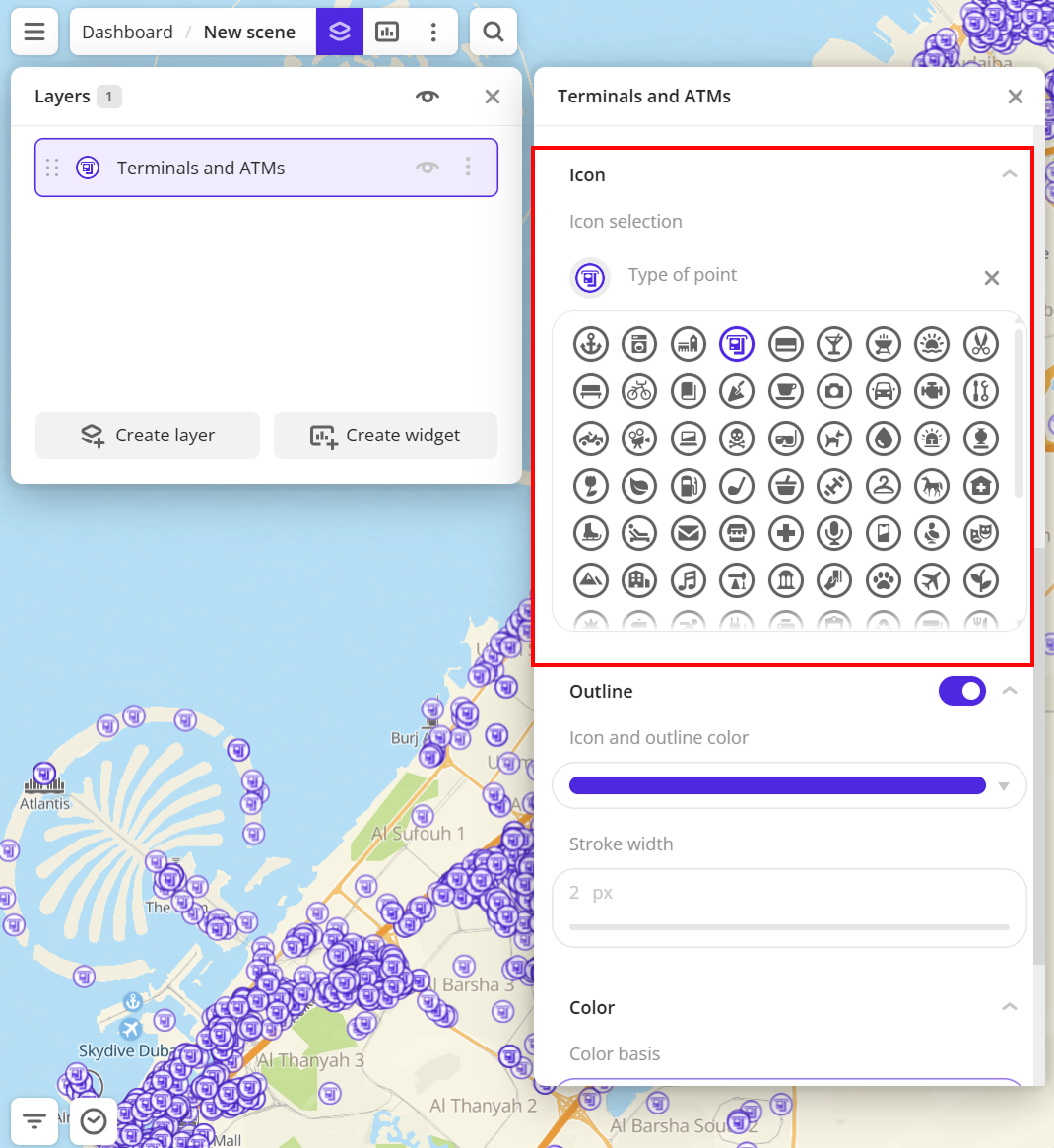 In the Icon field, select the icon to display points on the map: